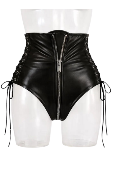 The corset-style side lacing adds both style and adjustability, while the smooth back design without a zipper keeps the look elegant and refined. These shorts are ideal for alternative fashion, gothic outfits, cosplay, photoshoots, club wear, and statement styling.