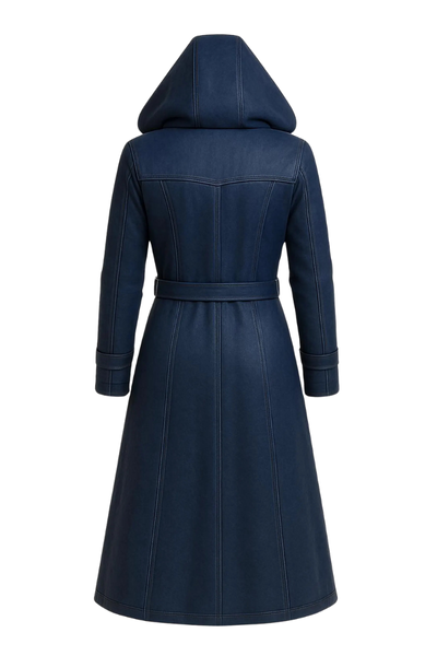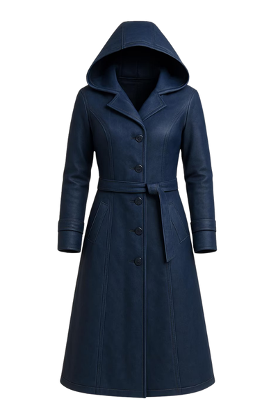 Upgrade your style with this women’s long hooded coat made from high-quality blue leather. It is designed to look elegant while keeping you warm and comfortable. This coat works well for daily wear and special themed events.