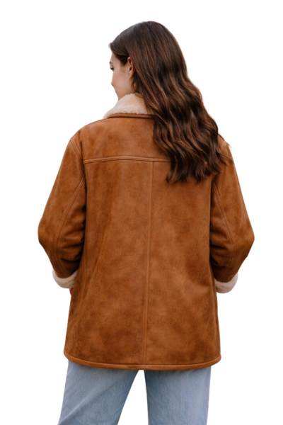 This coat is designed for women who love a vintage shearling-style leather jacket, combining durability, elegance, and winter-ready warmth.