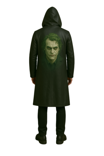 Joker Style real Leather Hooded Coat with Graphic Print | Halloween Villain Costume Outfit