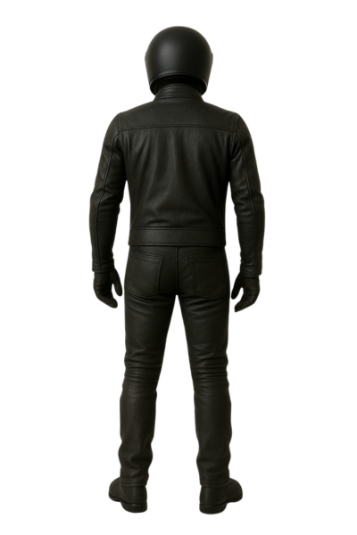 This leather costume mixes biker style with a futuristic look. The full outfit gives a strong, stylish, and confident appearance for any event.
