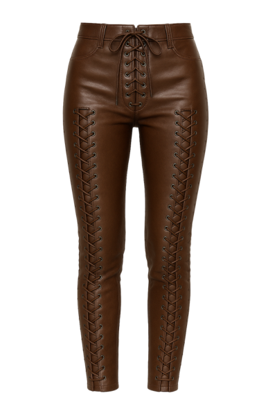 Step into bold style with these brown leather lace-up pants, designed to turn heads and elevate your gothic, biker, or festival look. Made from premium real leather with a flattering slim fit, these pants combine comfort with edgy detailing. Perfect for cosplay, Halloween, or everyday fashion that makes a statement.