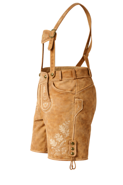 Tan Beige Real Leather Oktoberfest Shorts with Suspenders