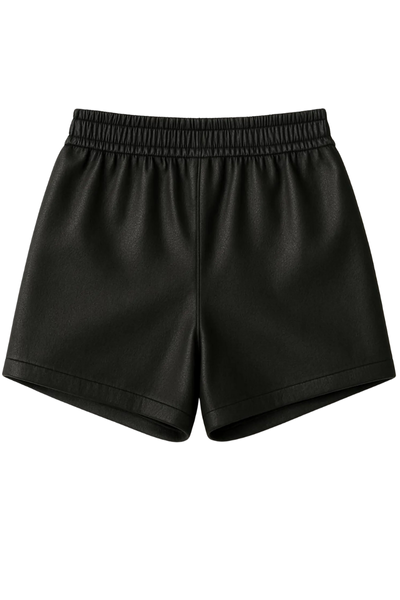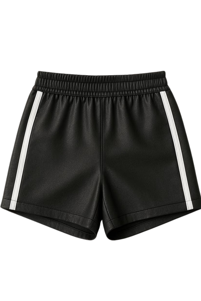 Unisex Black real Leather Shorts: Sporty White Stripe Streetwear
